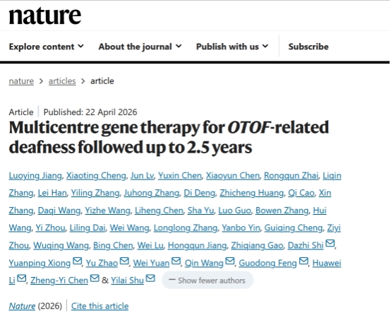 南华大学附属第二医院与复旦大学附属眼耳鼻喉科医院合作先天性耳聋基因治疗多中心研究荣登《Nature》