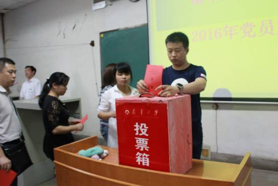 会议在庄严的国歌声中拉开序幕,陈熙宣读了校党委组织部《关于同意中国共产党南华第三次代表大会代表候选人预备人选的批复》。随后,根据会议议程,大会通过全体党员不记名投票,差额选举出16位同志为中国共产党南华大学第三次代表大会代表。在南华大学校歌中大会圆满闭会。