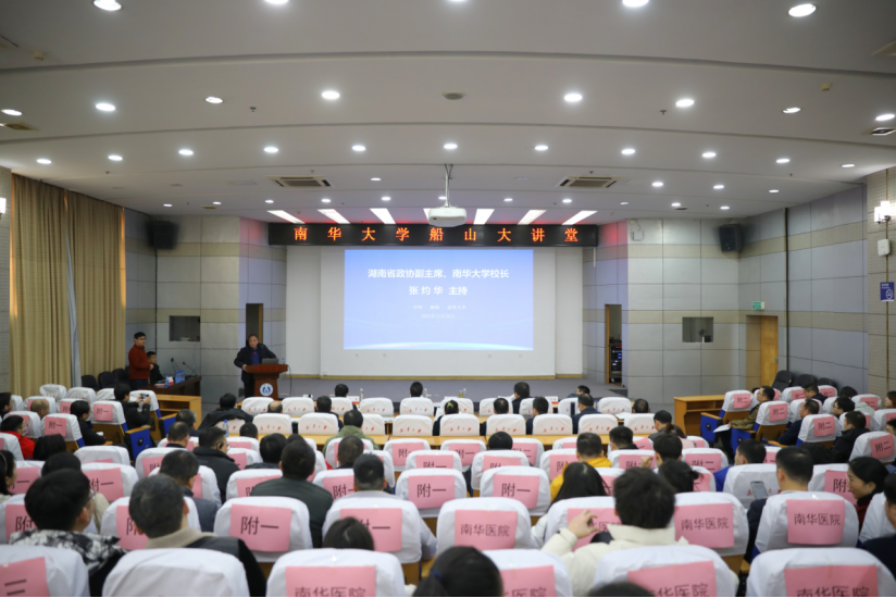 基础医学院、公共卫生学院、药学院、附属第一医院、附属第二医院、附属第三医院、附属南华医院师生代表近300人参加大讲堂。