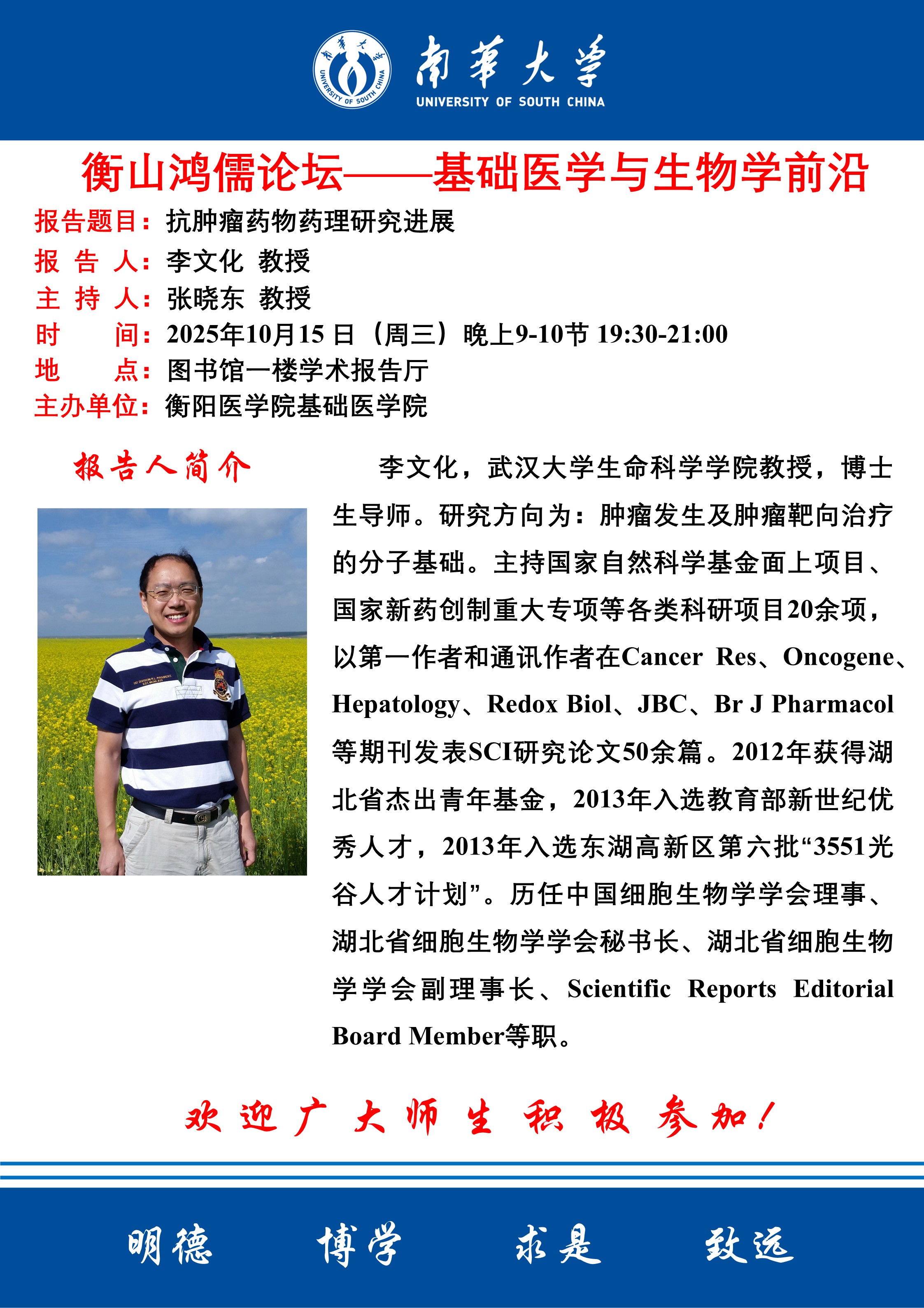衡山鸿儒论坛 | 李文化教授:基础医学与生物学前沿