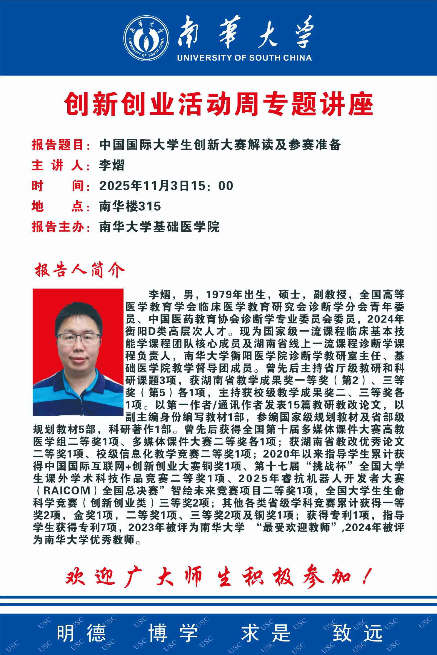 创新创业活动周专题讲座 | 李熠:中国国际大学生创新大赛解读及参赛准备
