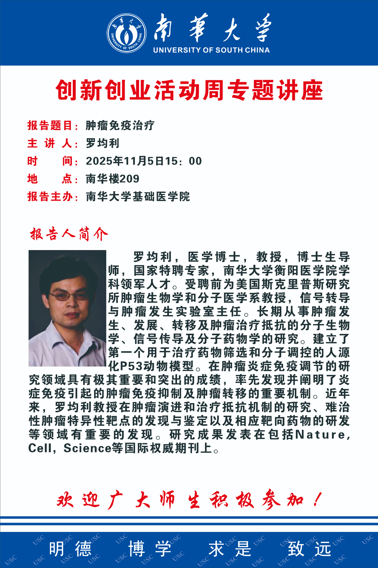 创新创业活动周专题讲座 | 罗均利:肿瘤免疫治疗