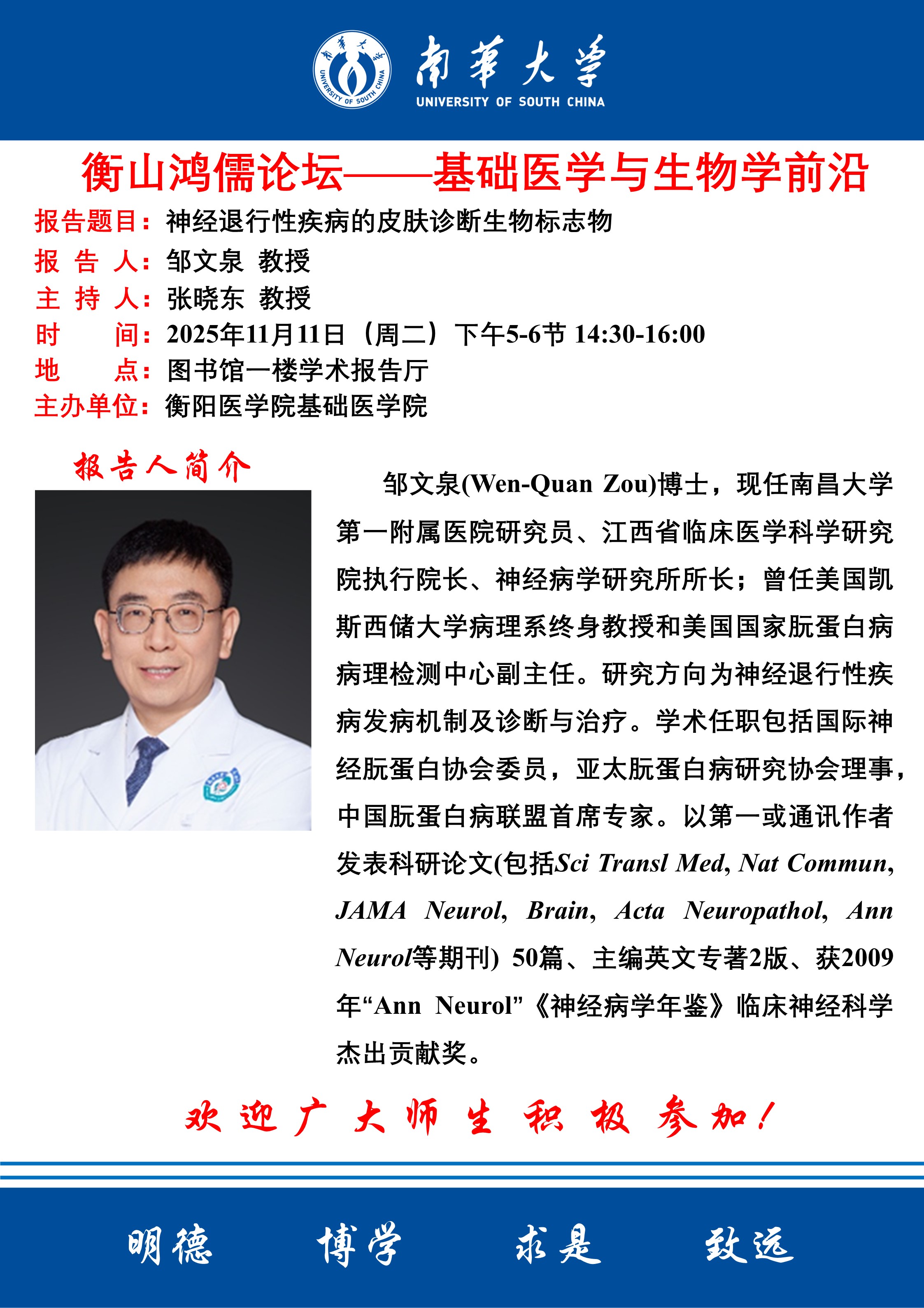 衡山鸿儒论坛 | 邹文泉教授:神经退行性疾病的皮肤诊断生物标志物