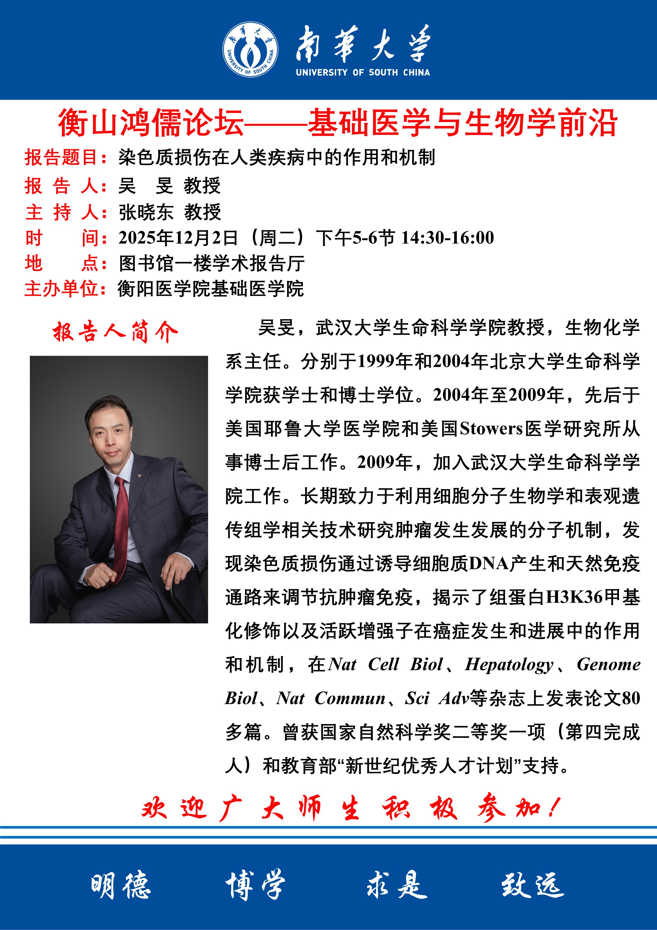 衡山鸿儒论坛 | 吴旻教授:染色质损伤在人类疾病中的作用和机制