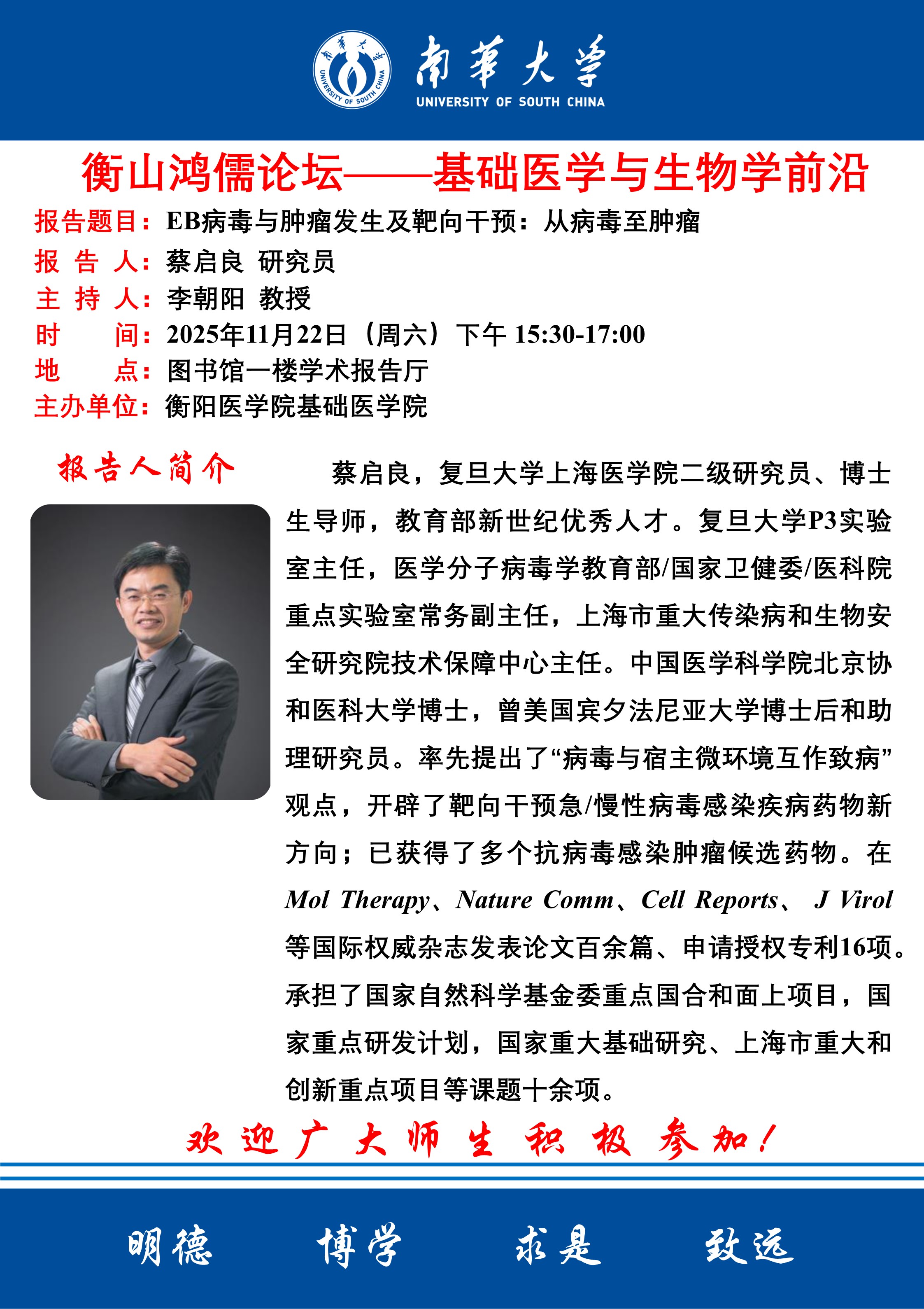 衡山鸿儒论坛| EB病毒与肿瘤发生及靶向于预:从病毒至肿瘤