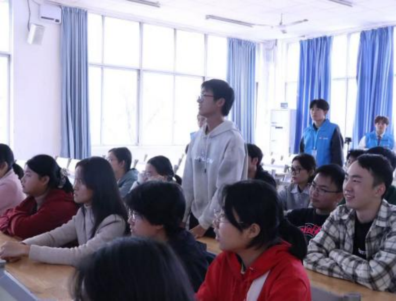 在随后的互动交流环节,现场气氛热烈,学子们踊跃发言,积极回答主讲人就此次宣讲会内容给出的提问,有的同学结合南华大学和专业特色分享了自己对“强核报国”的理解。宣讲团成员耐心倾听回应,进一步激发了学子们的使命感与责任感。