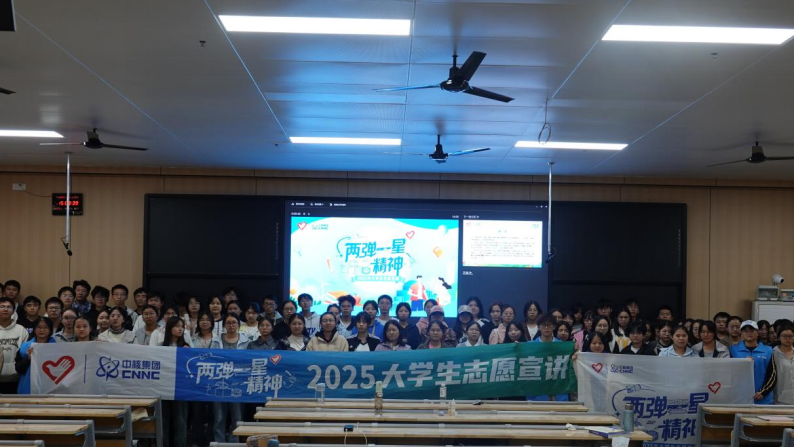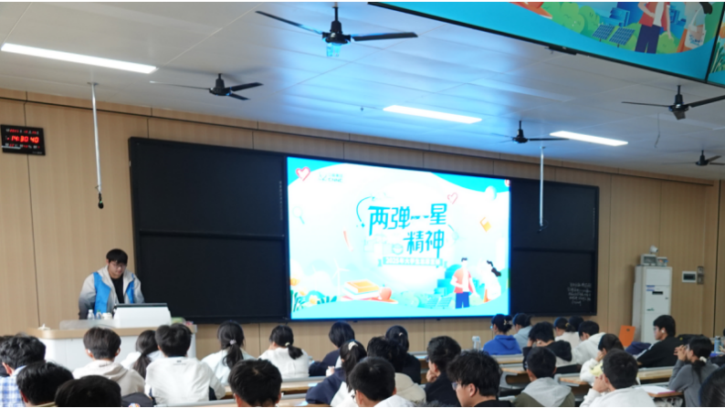 为深入学习贯彻“两弹一星”精神,厚植青年学生家国情怀,2025年10月26日,南华大学基础医学院“青衿医路,核你同行”志愿宣讲团精心筹备,倾情呈现了一场题为“聆听功勋尘封往事,赓续‘两弹一星’精神”的故事宣讲会。此次活动于南华楼111教室成功举办,现场座无虚席,来自基础医学院各年级的150余名同学齐聚一堂,共同聆听那段波澜壮阔的历史。