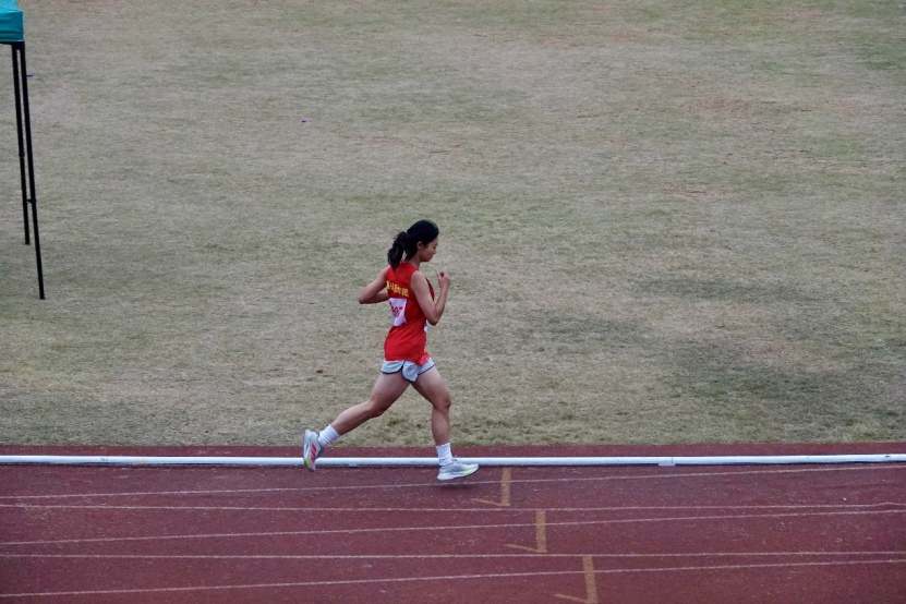 在漫长的赛道上,她与时间竞速;在体力的较量中,她与自我角逐。尽管她的面庞略显倦容,但她的眼中闪烁着从容与坚韧,这一幕深刻地震撼了每一位观众的心灵。在观众雷鸣般的喝彩声中,黄毓君同学一鼓作气,脱颖而出,跨越终点,荣获5000米长跑项目的桂冠。