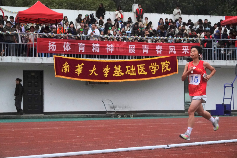 10月31日下午,南华大学大运会女子5000米长跑预决赛于红湘校区北校田径场隆重举行。在紧张激烈的角逐中,基础医学院本23级临床医学12班的黄毓君选手凭借23分40秒的优异成绩,成功摘得女子组5000米长跑桂冠。