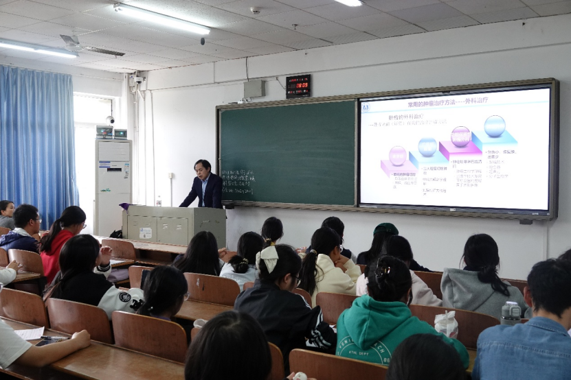 罗均利在创新创业周讲座中分析了肿瘤治疗现状。他指出,外科治疗、放疗等传统疗法虽奠定了肿瘤治疗基础,但存在局限性,晚期肿瘤疗效瓶颈及患者生活质量受影响等问题仍严峻,亟待创新技术破解。随后重点介绍了四种免疫治疗技术:免疫检查点抑制剂颠覆传统思路,成为多种肿瘤一线治疗方案;嵌合细胞治疗通过基因编辑改造患者自身T细胞,实现“精准识别、定向杀伤”的定制化抗癌模式,在血液肿瘤治疗中创造奇迹;治疗性肿瘤疫苗打破预防局限取得突破;联合治疗策略显著提升整体疗效。