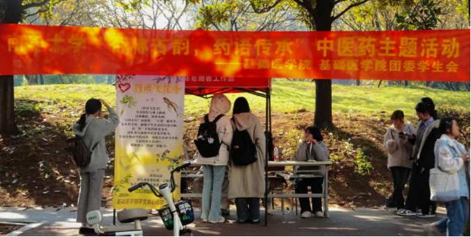 为继承和弘扬中医药优秀传统文化,提升医学生对传统医学的认知,2025年11月23日,南华大学红湘校区广场北路迎来了一场别开生面的中医药文化盛宴——“杏林古韵,药语传承”中医药主题活动。这场由基础医学院团委青年志愿者工作部主办、多部门联合承办的沉浸式体验活动,令古老的中医药智慧于青春校园中焕发出盎然生机。