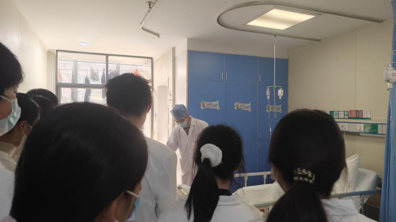 查房环节中,带教老师结合具体病例详细介绍了患者术前身体状况、诊疗方案设计以及术后恢复的注意事宜,让同学们直观了解临床诊疗的完整流程。同时,老师还注重传递“以患者为中心”的理念,示范了在操作中融入语言抚慰、肢体安抚的沟通技巧,同学们在老师指导下尝试与患者互动,深刻体会到医学人文关怀的重要内涵。