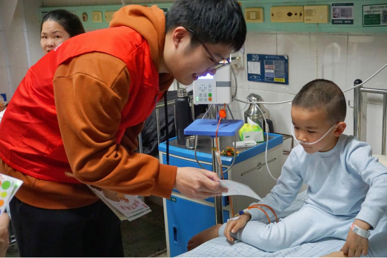 2026年1月15日下午,南华大学基础医学院一群学生志愿者走进南华大学附属第一医院儿科住院部,开展了一场名为“医路童乐,暖请相随”的志愿活动。他们以温暖互动与专业陪伴,为病房里的孩子送去了冬日的欢笑与慰藉,也在实践中深化了医学人文教育的现实内涵。