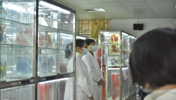 活动期间,同学们在解剖兴趣小组成员的带领下有序进入陈列厅参观。解说组的成员首先向大家介绍了陈列厅三大展区:铸型标本、大体标本及胚胎标本,并详细介绍了铸型标本的制作过程,使大家了解到每一具标本都来之不易,都蕴藏了生命的奥秘。