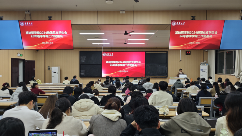 进一步凝聚团学骨干力量、明确新学期工作方向,3月28日晚,基础医学院2024级团总支学生会2026年春季学期工作部署会在南华楼112教室顺利召开。学院2024级全体辅导员、团学会全体成员、各班班长及团支书参会,共同擘画新学期团学工作发展新篇章。