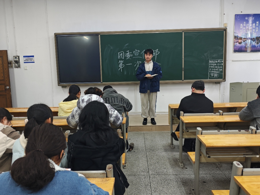 会议伊始,宣传部副部长雷博中介绍了此次会议的主要目的,这次会议旨在总结上个学期的工作情况,以及本学期的工作安排。他总结了上个学期宣传部在军训、招新、运动会上的亮眼表现,肯定了宣传部成员们在各种活动中的积极投入和辛勤付出。同时,他详细介绍了本学期部门重点工作安排,涵盖13部联谊活动、宣传部欢送会、三下乡讲座以及每月到梦空间的常规活动发布,让全体成员掌握本学期工作脉络,明晰自身职责与工作目标。