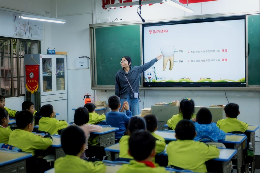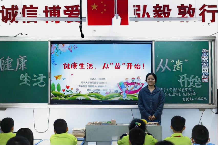 2025年11月3日下午,南华大学衡阳医学院研究生团学会“医路护苗”社会实践团走进蒸湘区实验小学2(2)班,带来了一场以“健康生活,从‘齿’开始”为主题的口腔健康科普活动。