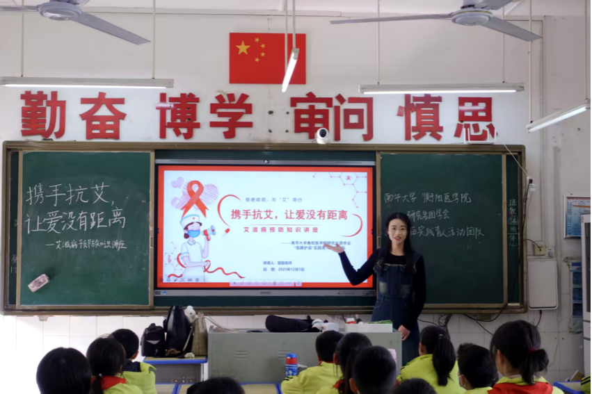 12月1日是第38个“世界艾滋病日”,为帮助少年儿童能够更加直观地认识艾滋病,掌握预防知识,增强自我防护意识,从而远离艾滋威胁,南华大学衡阳医学院研究生“医路护苗”实践育人活动团队走进蒸湘区实验小学,开展了一场以“携手抗艾,让爱没有距离”为主题的艾滋病预防知识小课堂,让健康的种子在孩子们心中悄然萌发。