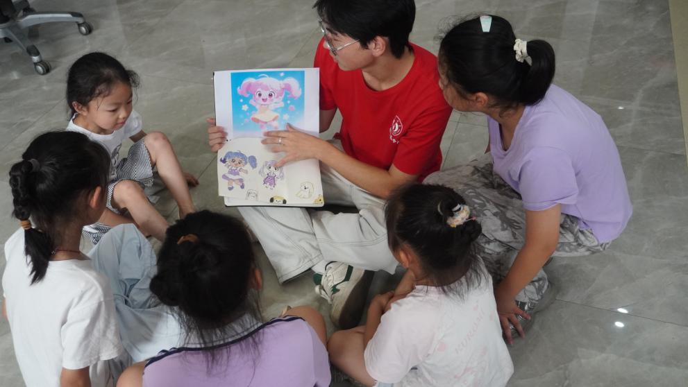 志愿者们运用人工智能技术,精心设计了两场互动活动。首场“AI提高美育素养”活动中,孩子们先用蜡笔画画,再用AI工具优化作品。当看到自己稚拙的画作在AI帮助下变得线条流畅、色彩丰富、细节生动时,孩子们惊喜不已。“哇!我画的星星本来只是歪歪扭扭的黄圈圈,AI一操作,它就变成会转圈圈的银河啦!亮晶晶的光边还跟着手晃呢!”一个孩子兴奋地分享着他的体验。现场展示的“AI创作工坊”,直观对比了手绘原稿与优化作品,让孩子们感受到科技赋能艺术的乐趣。