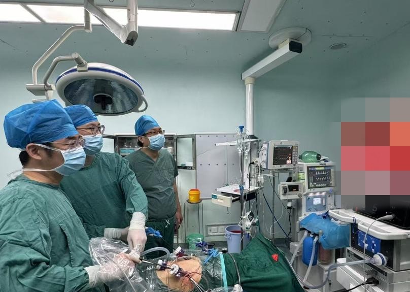 △在陆新升的指导下,泌尿外科病区主任秦钢领衔团队开展永州市首例腹腔镜下零阻断免缝合肾部分切手术。资料图
