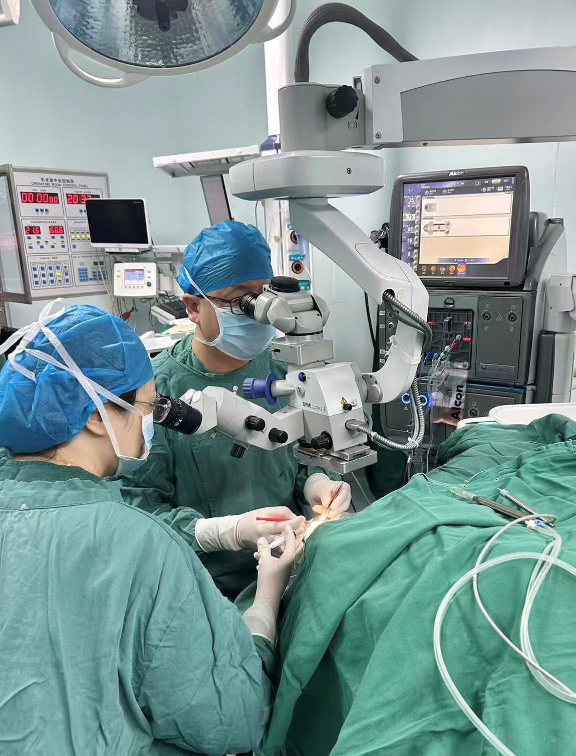 △南华帮扶专家刘秋平与眼科医生共同为患者实施手术。资料图