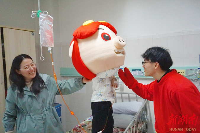 活动现场,志愿者们化身孩子们喜爱的卡通角色,走进一间间儿科病房,在向陪护家长说明来意后,热情邀请孩子们前往精心布置的活动室开启欢乐时光。
