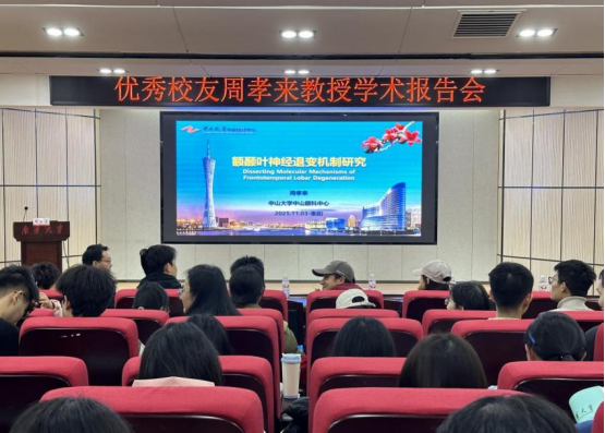 2025年11月3日下午3时,衡阳医学院医研楼一楼学术报告厅内座无虚席,我校优秀校友、中山大学周孝来教授应邀返校,为师生们带来了一场题为《Dissecting Molecular Mechanisms of Frontotemporal Lobar Degeneration》(额颞叶神经退变机制研究)的精彩学术报告。本次报告由衡阳医学院、研究生院与科研部联合主办。